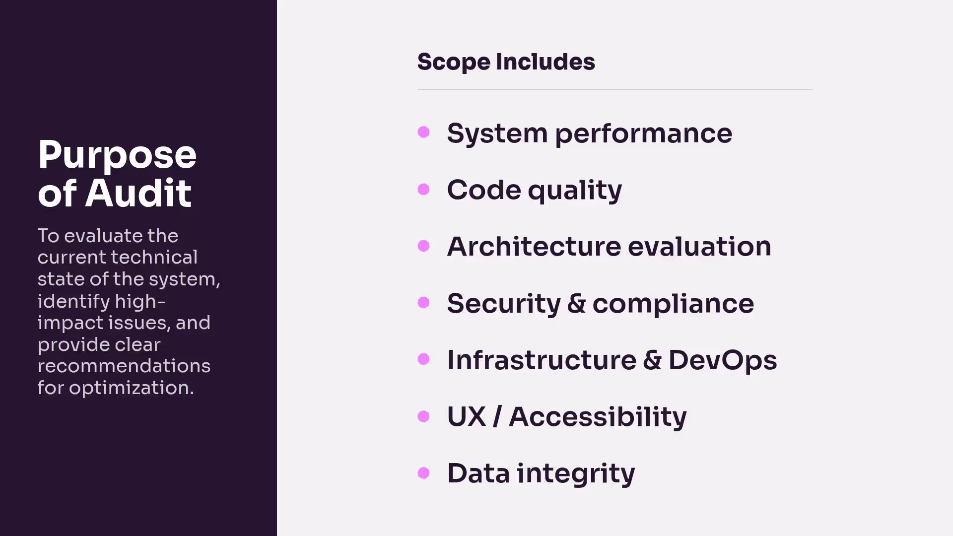 Bullet lists give your audience an idea of what you’re saying without a lengthy explanation. Keep each bullet point concise.